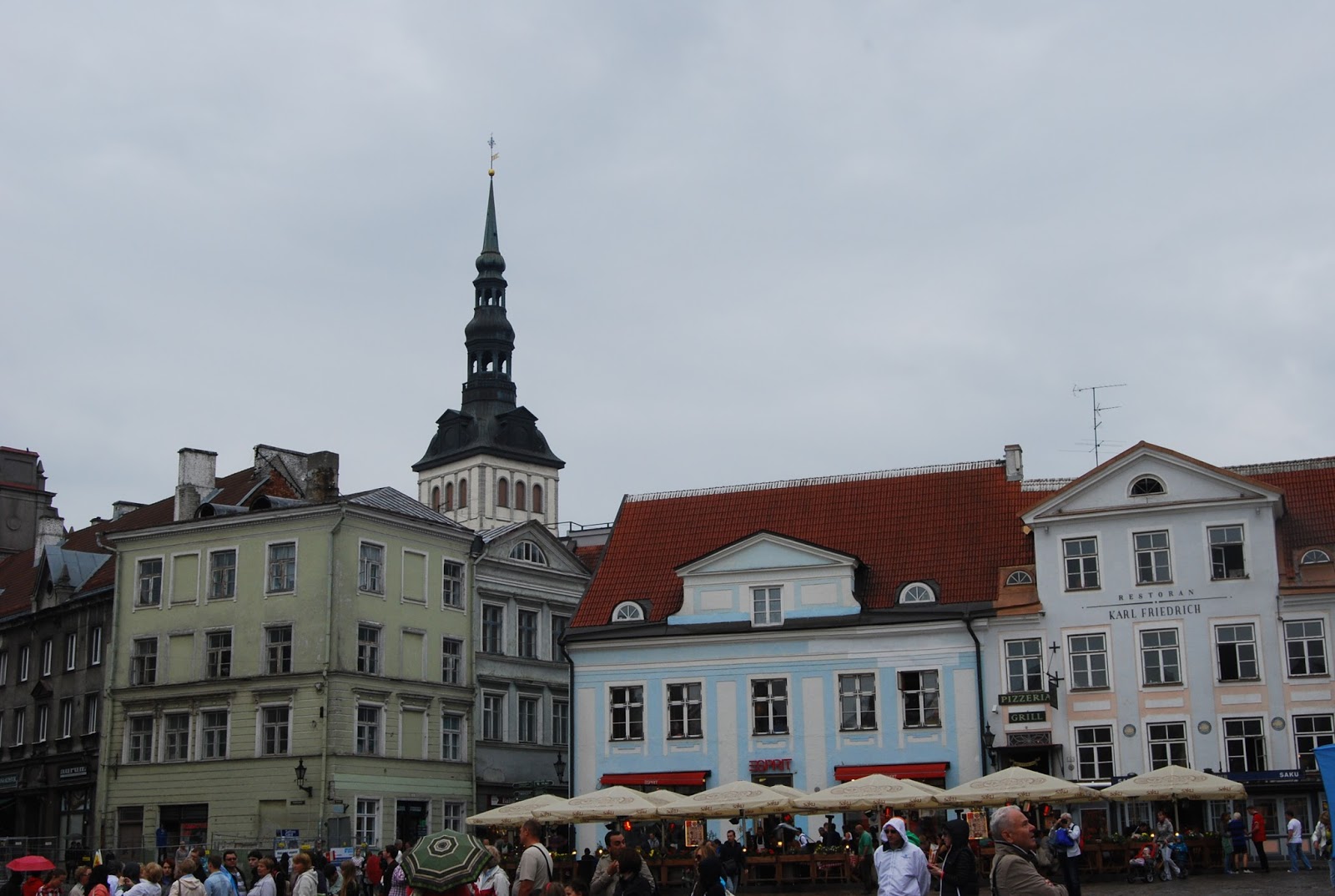 Op het grote raadhuisplein lopen we een Nederlands sprekende Est tegen het lijf. Hij heeft een Nederlands vriendin gehad met wie hij een paar jaar in Lisse heeft gewoond.